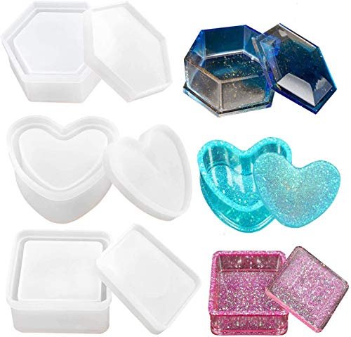 Beauty and Jewelry Box Molds: This kit comes with 3 different shapes of casting molds. Square, Heart and Hexagon.Size: Each mold is 3 inches big. M...