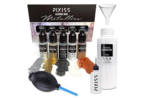 Pixiss Metallic Alcohol Ink Set - 5 Large Highly Saturated Colors (15ml/.5oz) Alcohol-Based Inks for Resin Petri Dishes, Alcohol Ink Paper, Tumbler...